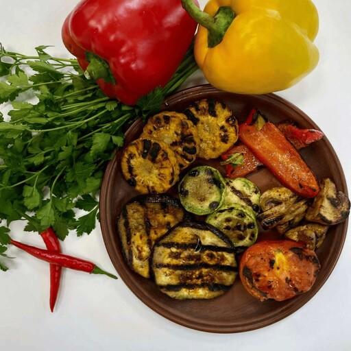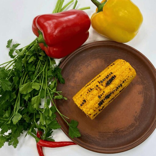 Баклажан, кабачок, перц болгарский, томат,кукуруза запеченные на мангале
